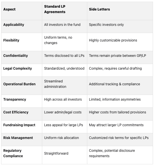 Direct Comparison: Side Letters vs Standard LP Agreements